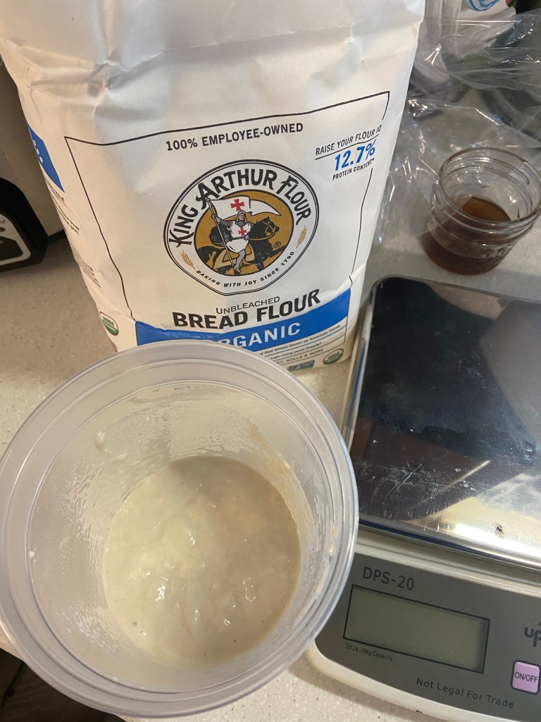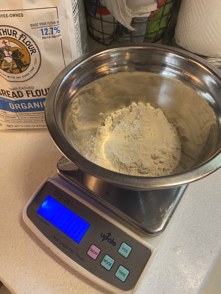 If you’re one of the lucky ones that picked up a starter from me, you have 100 grams. Yes, you need a kitchen scale. No, it’s not all that optional. Volume measurements are unreliable and unpredictable. You can get a digital scale for $15-20 at some groceries, most box stores, and definitely on Amazon. Learn to use the tare function.