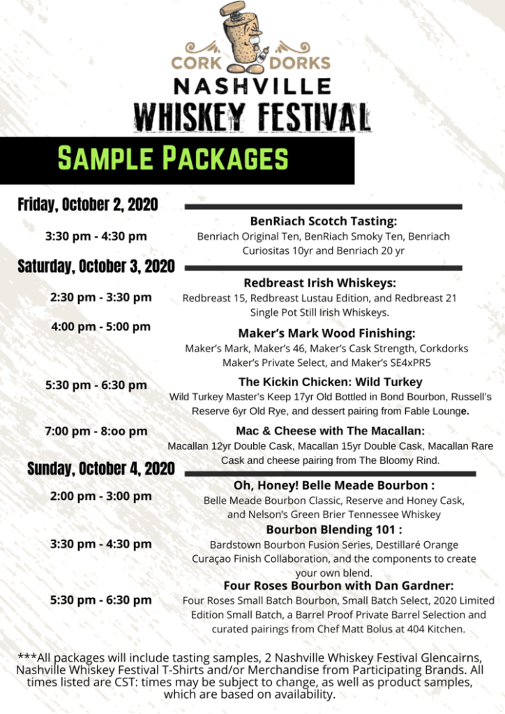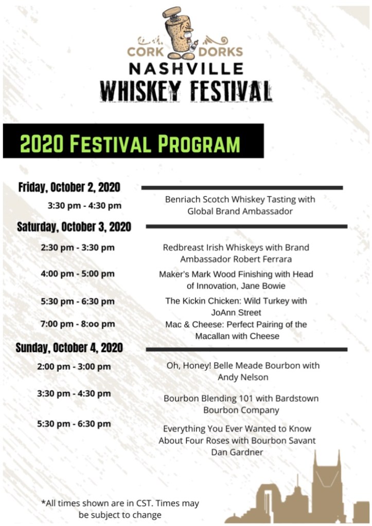 Nashville Whiskey Festival is back this year and coming to your living room. The 2020 Festival presentations might all be all virtual, but the whiskey is real. Exclusive experiences start Friday, October 2 and run through Sunday, October 4. Eight unique events covering American, Scotch, and Irish whiskeys are a la carte and tickets can be purchased separately to any or all of the events.