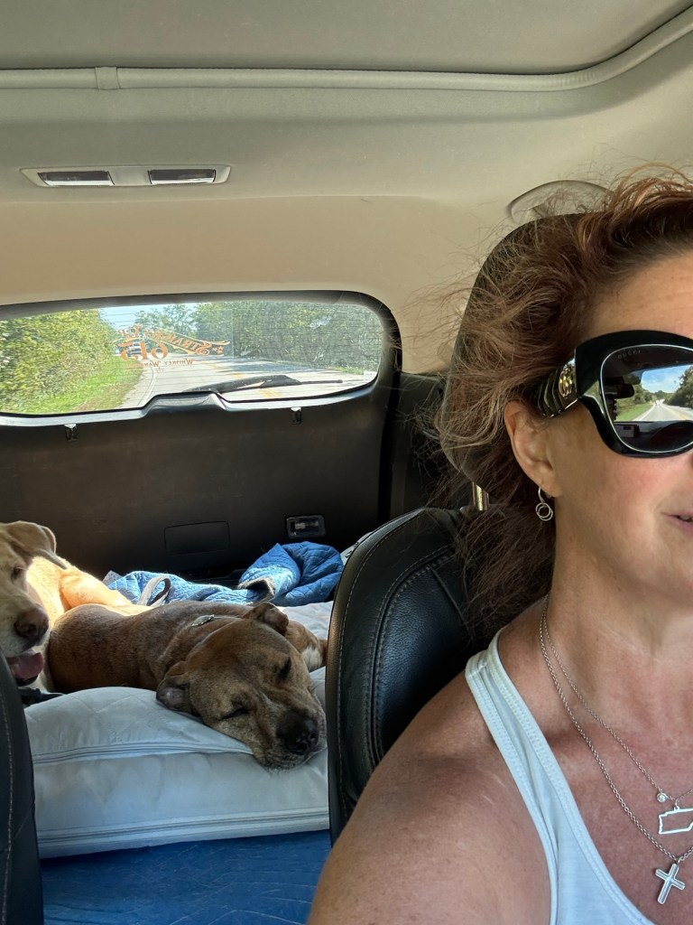 I wasn’t the only one reveling in the ride. Olivia and Cooper were in full doggy bliss, ears flapping, tongues lolling, their heads stuck out the windows as if they’d been waiting their whole lives (or all morning) for this stretch of road.